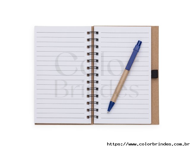 Bloco de anotações ecológico com caneta e autoadesivos. Bloco com dois suporte internos para cartão, possui cinco blocos autoadesivos com 20 folhas cada, bloco laranja e bloco amarelo com aproximadamente 20 folhas cada. Possui aproximadamente 70 folhas brancas pautadas e caneta de papelão de clip e ponteira plástica.